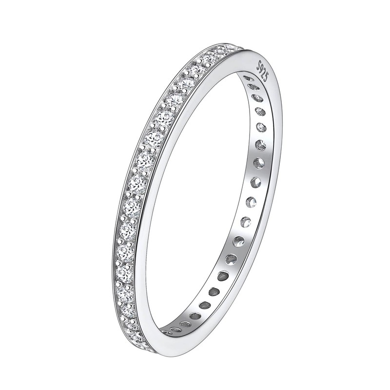 - FULL ETERNITY BAND RINGS-- An eternity ring with the band of real solid silver set with a continuous line of brilliant cubic zirconia to symbolize neverending love. It is a significant promise engagement anniversary wedding silver ring, also a classic piece for stacking.