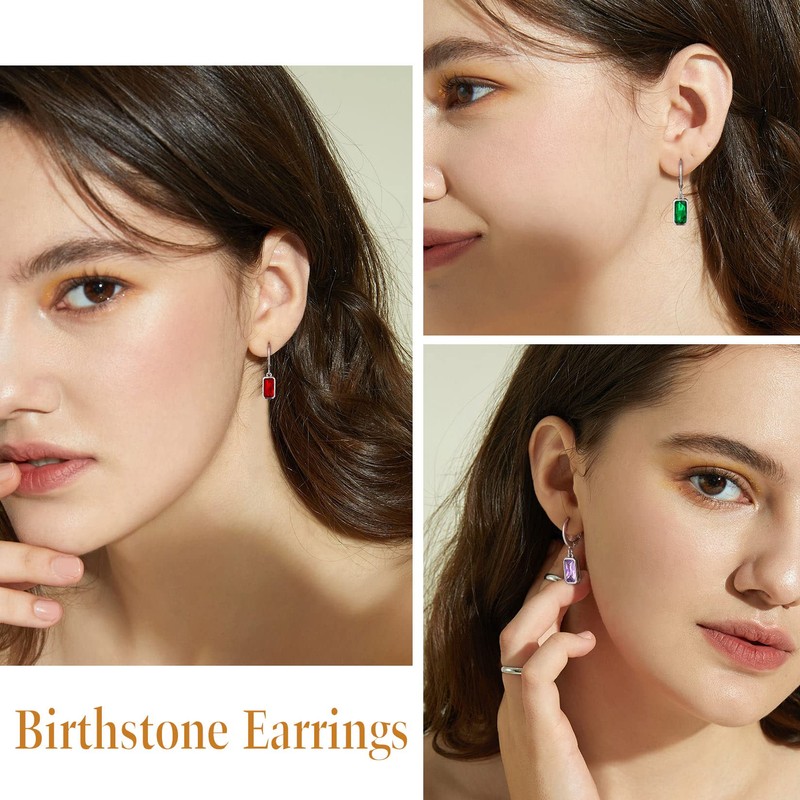 - BIRTHSTONE DANGLE EARRINGS-- The design of these dangling earrings is classic and modern. The square-shaped center is decorated with a transparent crystal halo, creating a shiny, beautiful and delicate luster.