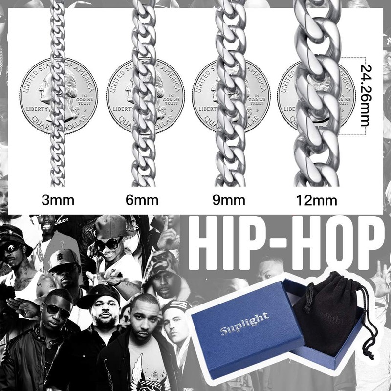 Suplight 9mm 316L Stainless Steel Chunky Miami Cuban Chains Necklaces Hip Hop Punk Jewelry Waterproof Curb Cuban Link Chain Necklace for Men & Women 22 inches
