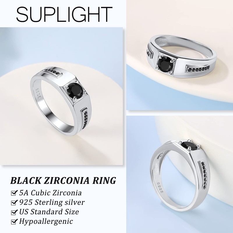 Suplight Mens Black Onyx Rings 925 Sterling Silver Cubic Zirconia Promise Rings for Men Size 10
