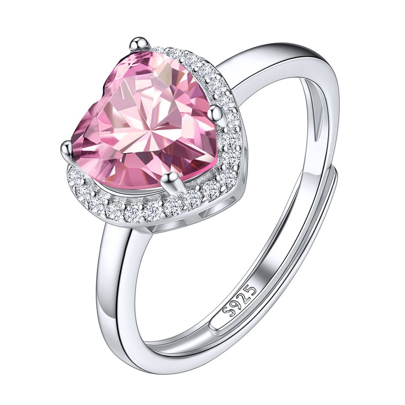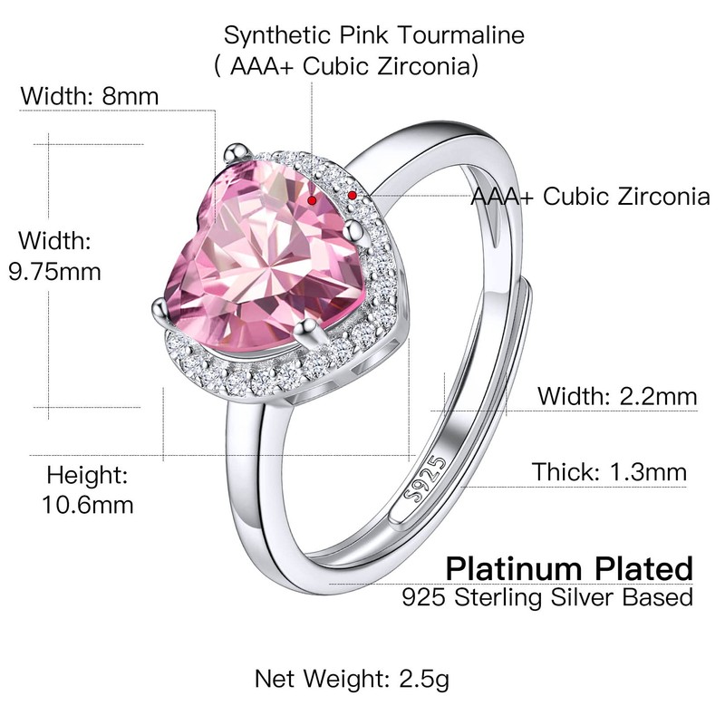 - OCTOBER BIRTHSTONE RING: 8mm heart shaped cz birthstone ring with 925 silver stamp. 1mm band thin but sturdy, adjustable to fit the small or large finger from size 6 to 12.