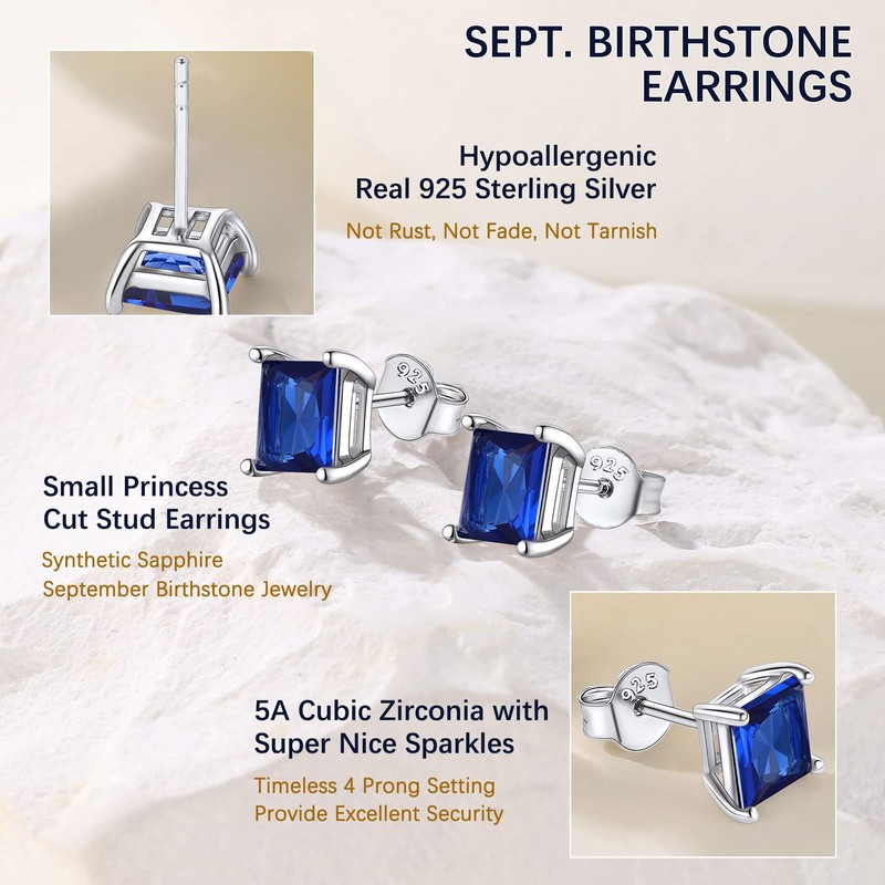 Suplight September Birthstone Earrings 925 Sterling Silver Blue Sapphire Stud Earrings
