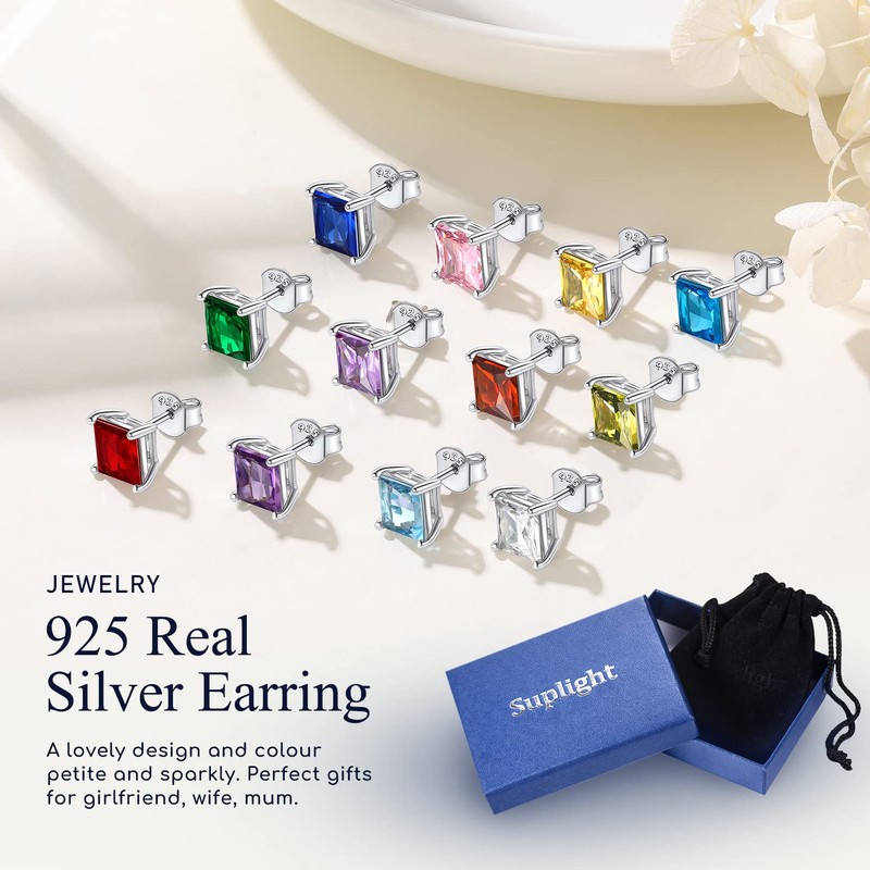 • STERLING SILVER STUD EARRINGS-- Exquisitely crafted in 925 sterling real silver with stamp. High quality AAA+ cubic zirconia birthstone earrings, high polished, never fade. No nickel, no lead, hypoallergenic for sensitive ears, comfy fit.