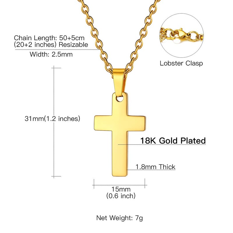 - 🎉 PLAIN CROSS PENDANT 🎉 -- 18k gold/black plated 316L stainless steel cross necklace with adjustable cable chain. Charm size: 31mm*15mm*3.8mm Chain length: 20 inches +2 inches extender