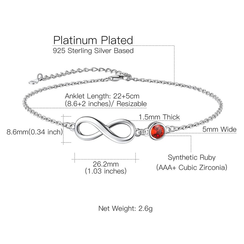 Suplight Women Anklet Crystal Red Ruby July Birthstone Anklets 925 Sterling Silver Infinity Anklet Bracelets for Women