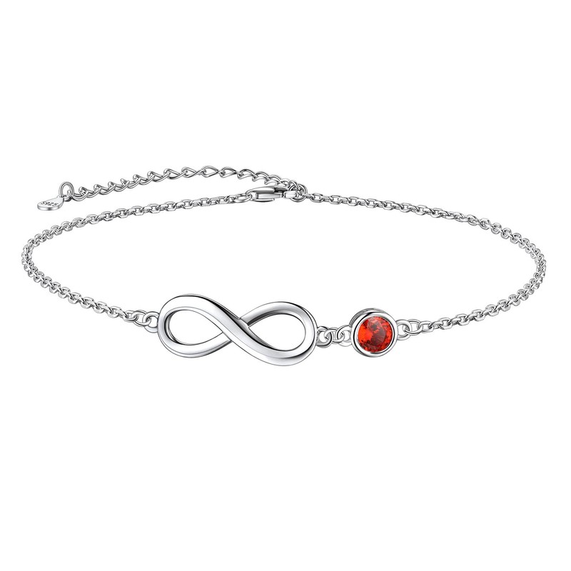 - INFINITY BIRTHSTONE ANKLET -- The infinity symbol refers to having no boundaries or boundless. Dainty minimalist january birthstone charm ankle bracelets, simple cute summer jewelry, these women’s anklets offer great comfort when worn to parties by the shore.