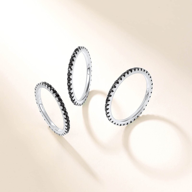 - ❤ BLACK CZ ETERNIRY RINGS ❤ Classy simulated diamond cubic zirconia stackable eternity band ring. The black crystals sparkle on a solid silver band, 2mm dainty rings suitable for everyday wear.