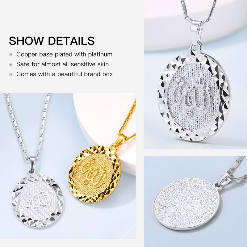 Suplight Women's Necklace 18k Gold-Plated / Platinum Plated Allah Chain Heart/Oval Pendant Necklace Arabic Muslim Amulet Islamic Fashion Jewellery for Women Girls with Gift Box, Copper, Cubic Zirconia