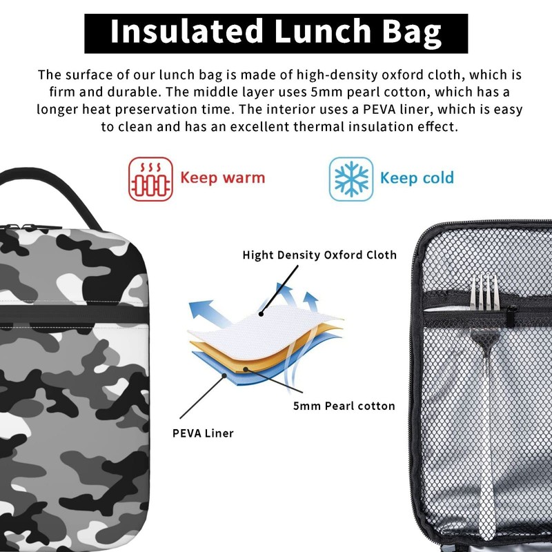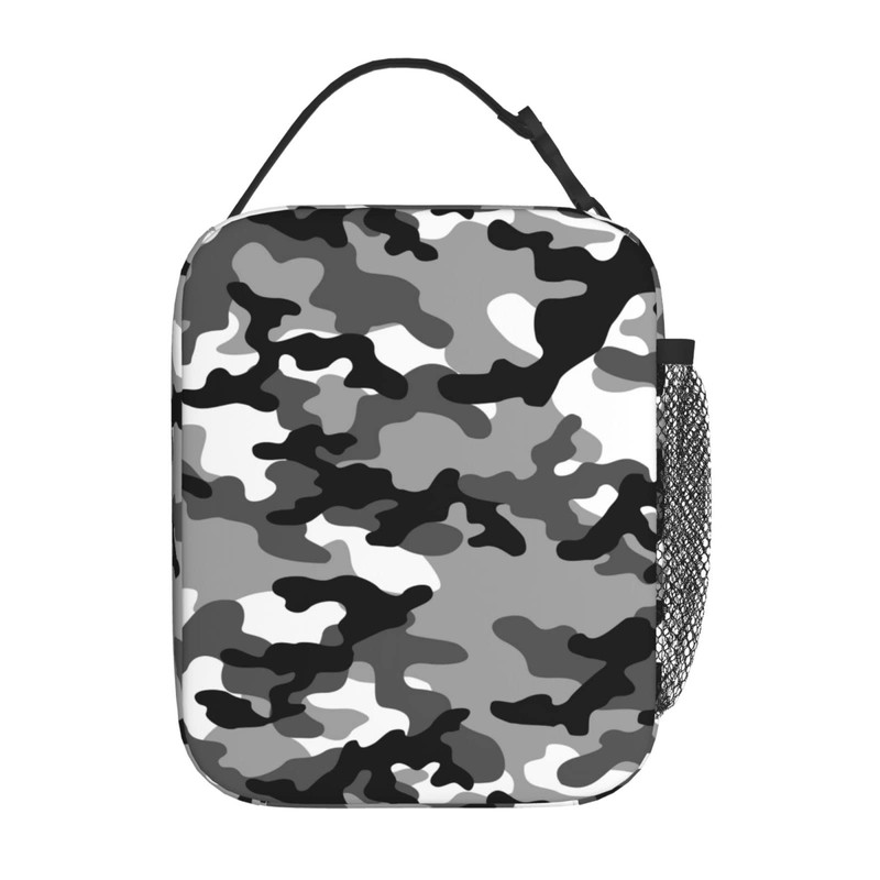 SUPLUCHOM Lunch Box Black White Camo Camouflage Insulated Bag Reusable Leakproof Food Tote Container with Side Pocket for Work School Picnic Hiking Daytrip