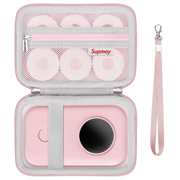 Supmay Hard Carrying Case for Phomemo D30 Label Maker Machine, Portable Bluetooth Mini Label Printer Protection Case with Mesh Pocket for Label Tape, Charging Cord, Pink