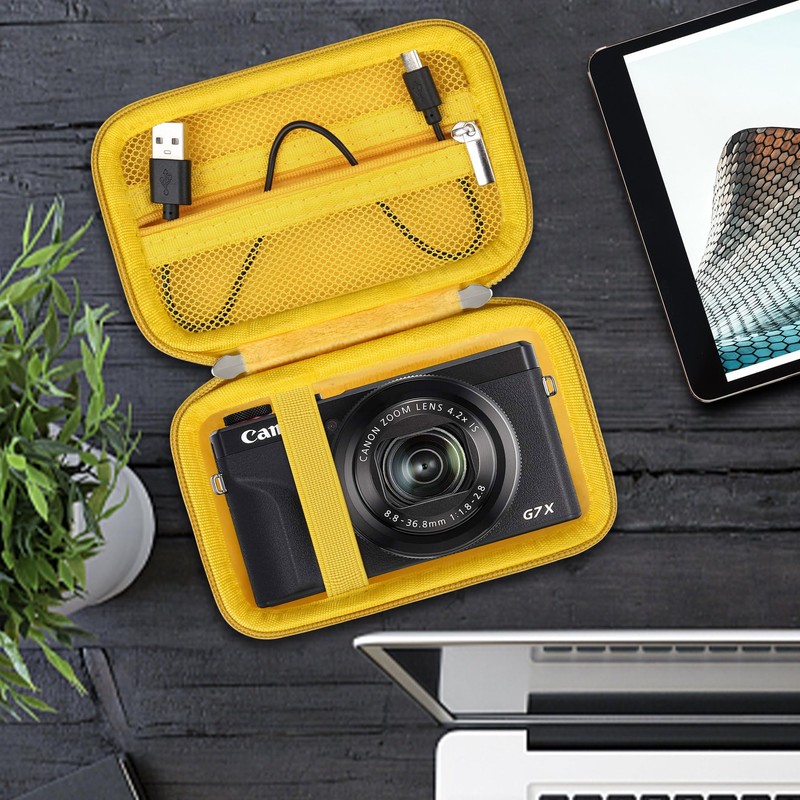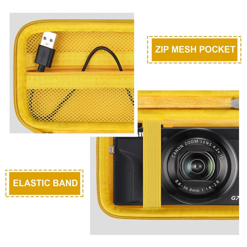 Supmay Hard Travel Case for Canon Powershot G7 X Mark II/ G7 X Mark III Digital Camera, Protective Storage Bag with Zipper Mesh Pocket for Battery Pack, Charging Cable and Other Accessories, Yellow
