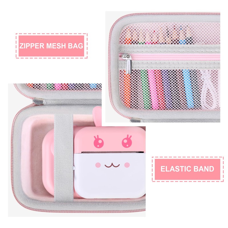 Supmay Kids Camera Carrying Case for MINIBEAR Instant Camera, Children Digital Camera Travel Storage Case with Mesh Pocket Can Store Print Paper, USB cable Memory Card or Other Accessories, Pink
