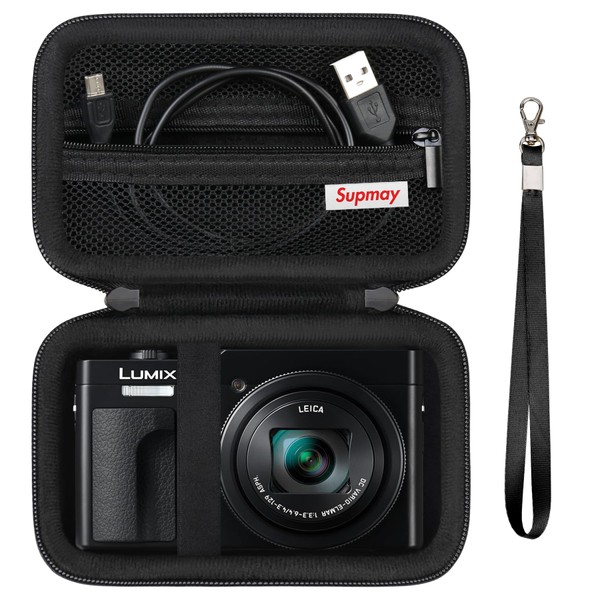 Supmay Camera Case for Panasonic LUMIX ZS99 Point and Shoot Camera/LX10 ZS200D ZS200 ZS80D ZS80 ZS100 ZS70 ZS60 Camera, Protective Case Bag with Mesh Pocket for Battery Pack, Charging Cable, Black