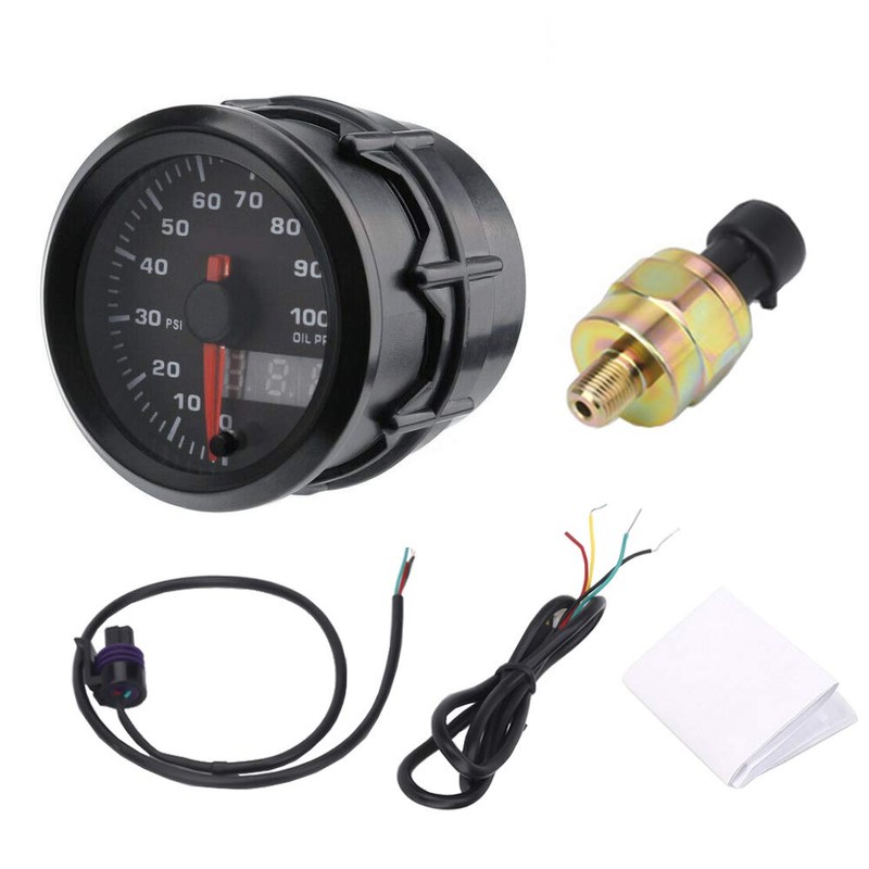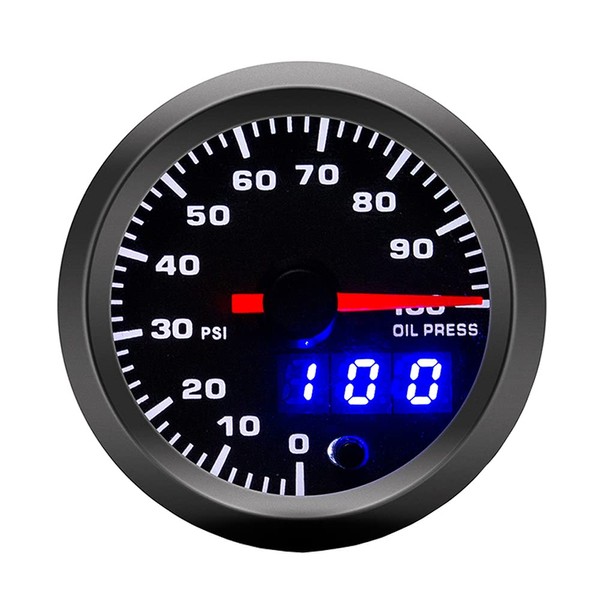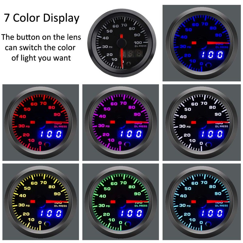 Supmico Universal Car Truck 52mm Oil Pressure Gauge Meter Kit Press PSI 7 Color LED Light Pointer Dial Digital Dual Display Indicator Electronic
