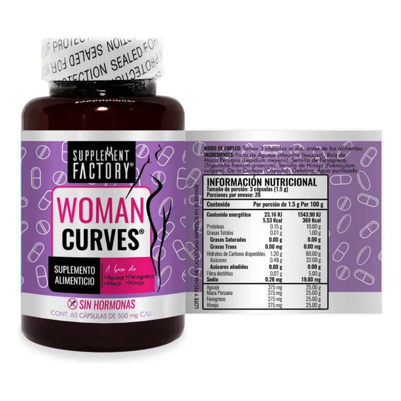Supplement Factory Woman Curves Mejora y Aumenta tu Busto y Glteos 60 Cpsulas, con Ingredientes de la Alta Calidad