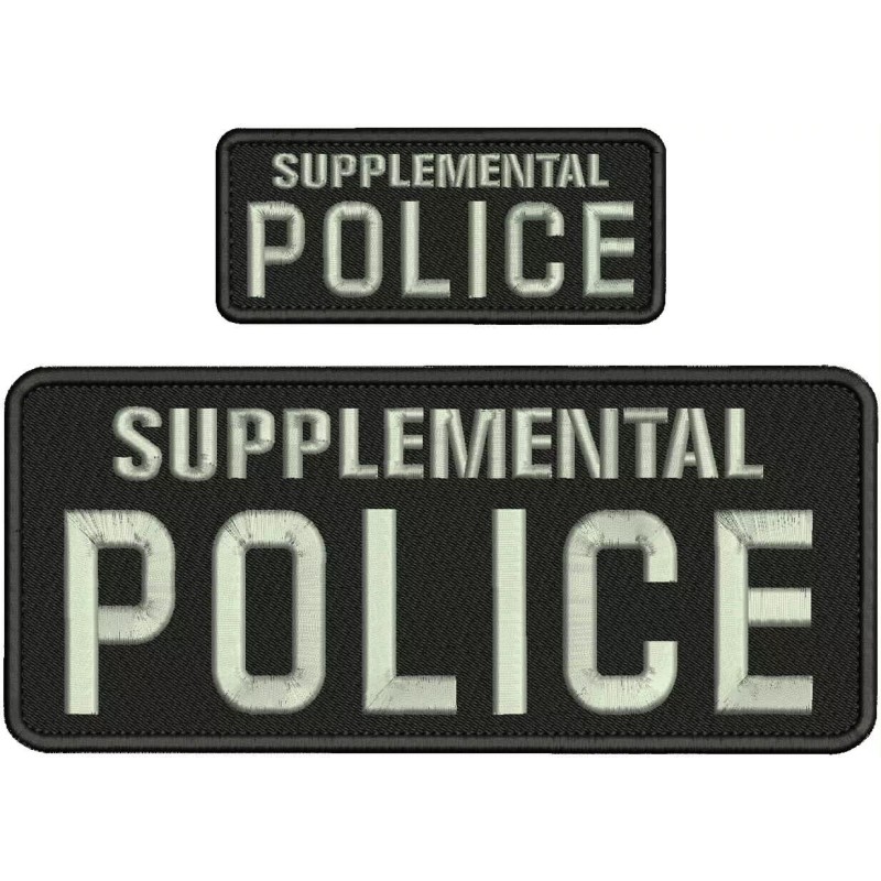 Supplemental Police EMBROIDERY PATCH 4X10 AND 2X5 HOOK ON BACK  BLK/SILVER