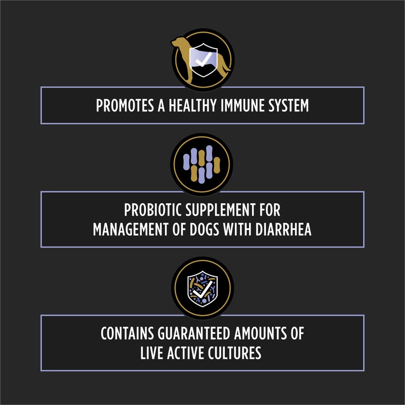 - Probiotic supplement for the dietary management of puppies and adult dogs with diarrhea