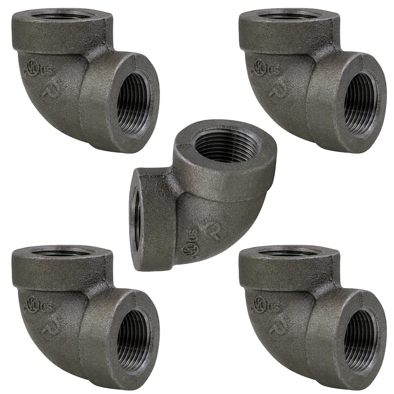 SUPPLY GIANT BXNL0112-5 Malleable Iron FNPT Threaded Nipples Connector, Connects to 1-1/2 Inch Black (Pack of 5) BXFL0112-5 XH 90 Degree Elbow Pipe Fitting, 1-1/2"
