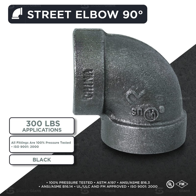 SUPPLY GIANT BXNL0112-5 Malleable Iron FNPT Threaded Nipples Connector, Connects to 1-1/2 Inch Black (Pack of 5) BXFL0112-5 XH 90 Degree Elbow Pipe Fitting, 1-1/2"