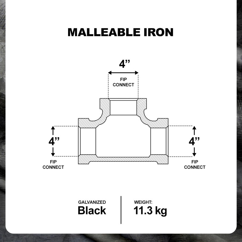 - Black malleable tee for high pressure applications