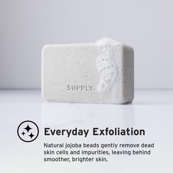 - INTENSE MOISTURE AND SKIN SOOTHING: Enriched with shea butter and aloe, Supply Exfoliating Bar Soap provides a double dose of hydration and soothing properties. Shea butter intensely moisturizes and locks in hydration, while aloe helps soothe irritated skin and enhances natural skin healing. This combination leaves your skin feeling nourished, not just clean.
