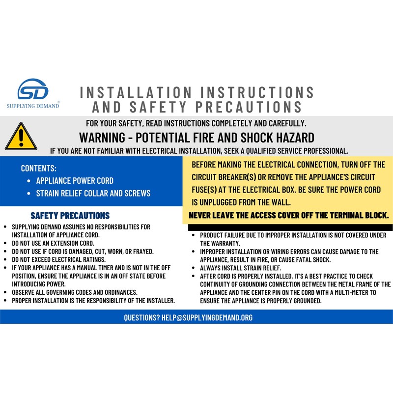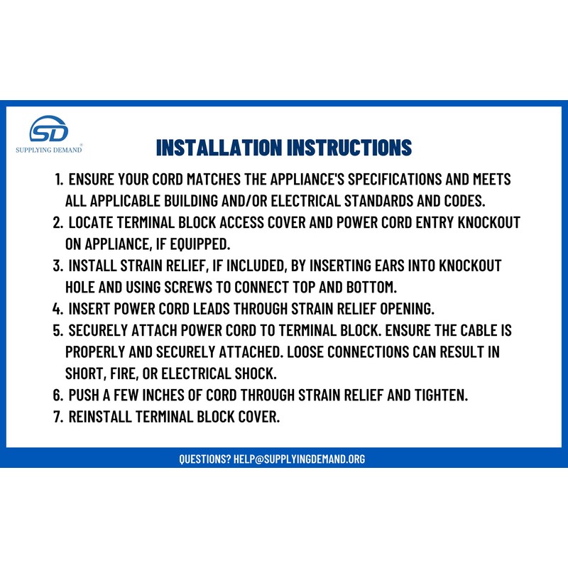 Supplying Demand 10 Foot Range Electrical Power Cord 3 Prong Wire 50 Amp 250 Volt