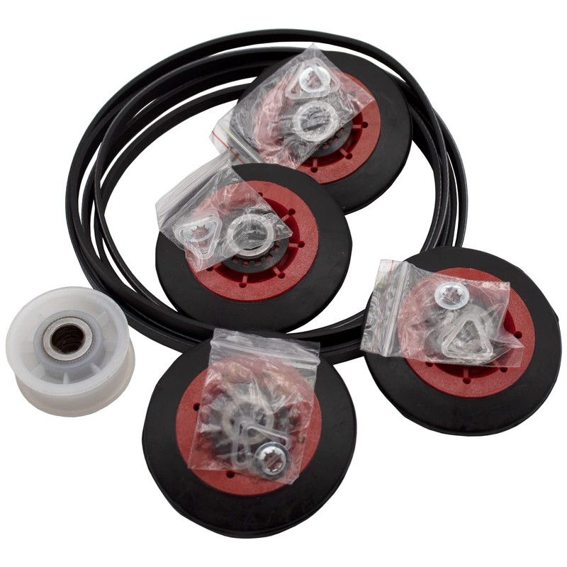 - This kit includes (1) 4 rib 93-1/2 inch long 40111201 drum drive belt, (1) 279640 idler pulley with self lubricating bearing, (4) W10314173 heavy duty drum support rollers, washers, and tri rings.