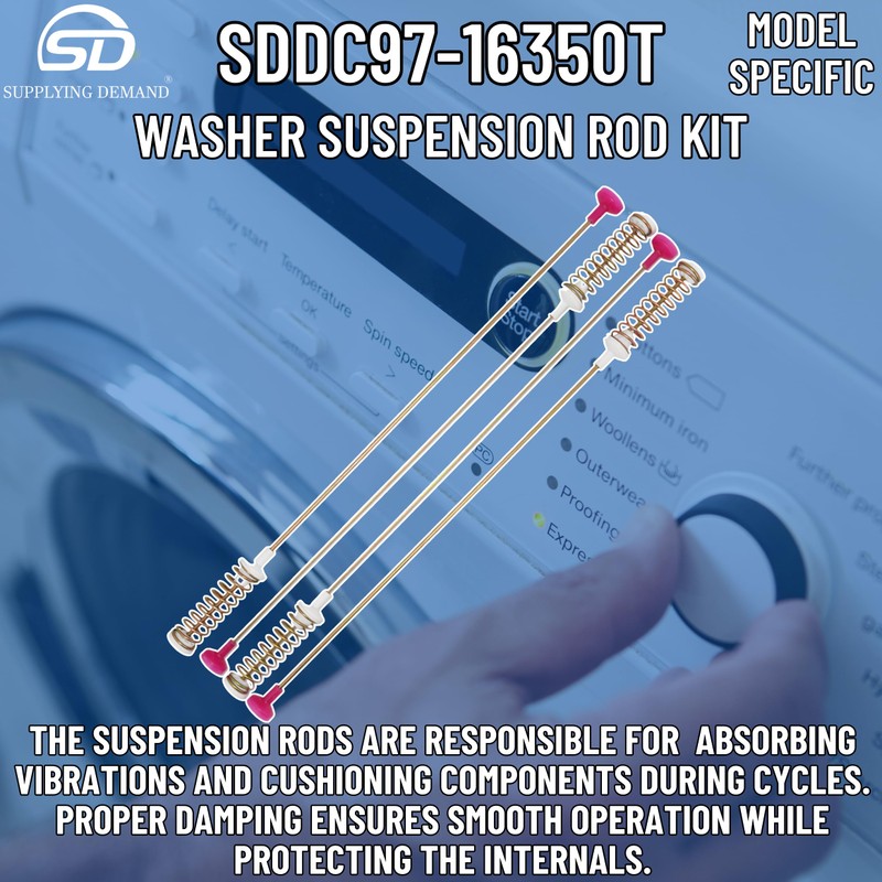 - This 4 piece rod kit includes high-quality washing machine suspension rods to keep your washing machine balanced and stabilized during use.