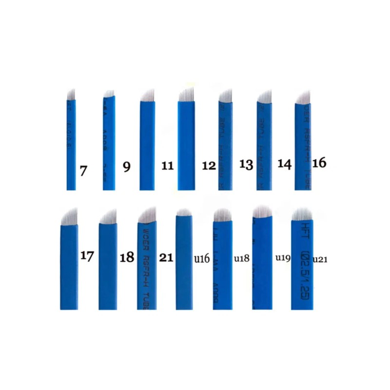 These Microblading Needles are the embodiment of portability and practicality, making them an essential addition to any makeup artist's repertoire. Their compact size ensures they fit seamlessly into your beauty kit, ready to transform ordinary brows into stunning works of art at a moment's notice. The blades of these Microblading Blue Needles are a fusion of sharpness and elasticity, creating a harmonious balance that translates into effortlessly beautiful eyebrow lines. Whether you're aiming for crisp and defined strokes or a softer, more natural look, these needles deliver the precision required to meet your artistic vision. With a pack of 50 at your disposal, you have the freedom to experiment, refine your technique, and cater to a diverse range of clients, all while maintaining the utmost hygiene and professionalism.