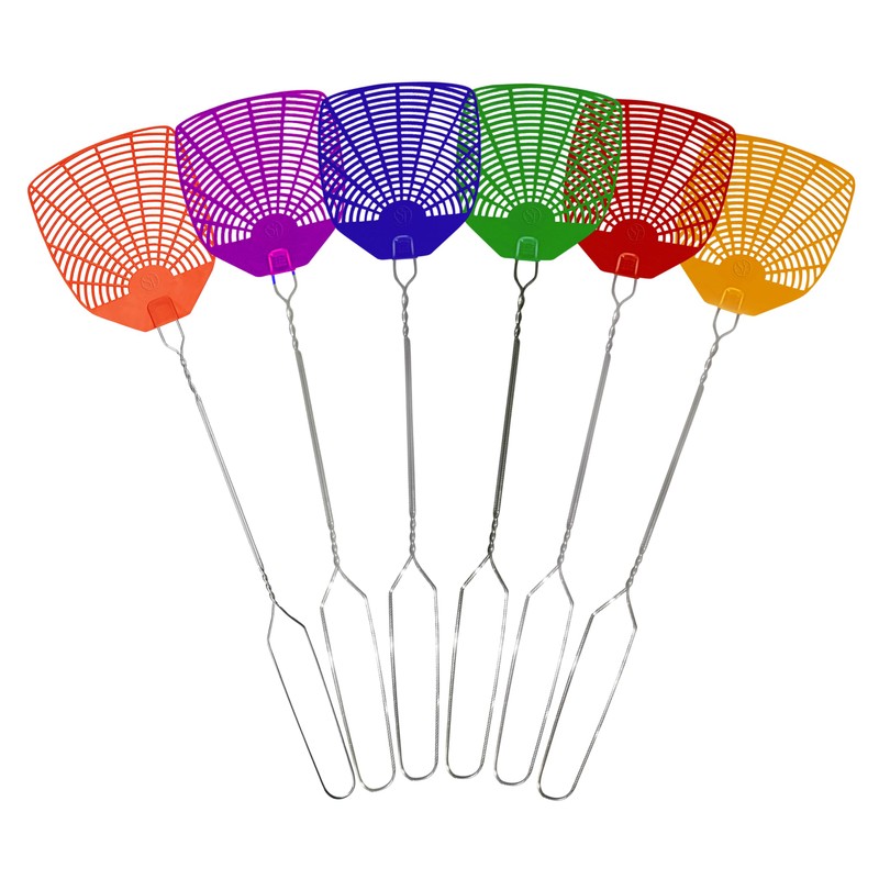 - MULTI-PACK: Each set of supreme swatters 6 Pack comes in a variety pack with assorted colors Red,Purple,Orange,Yellow, Blue, and Green. These bright colors make the fly swatters easy to find when you’re in a pinch. Keep one swatter at home, and keep the other in the car or your office. You can also pack a fly swatter when you go camping or fishing