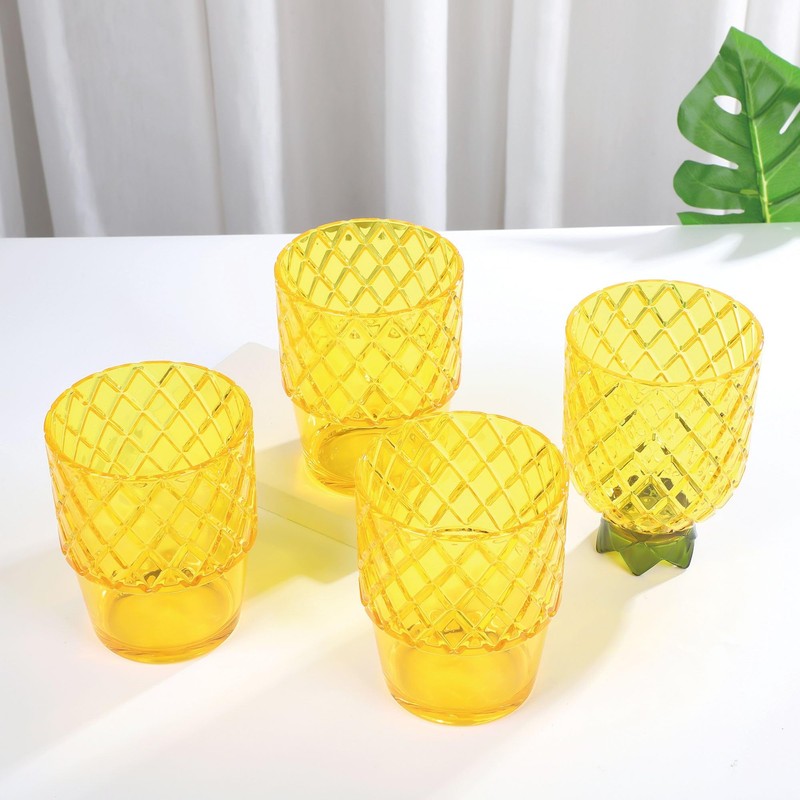 Supreme Housewares Pineapple Shape Plastic Tumblers, Reusable BPA-Free Acrylic Stackable Cups for Water or Iced Beverages, Yellow, Set of 4