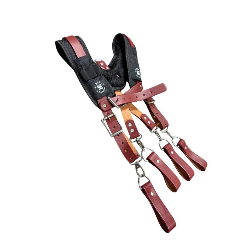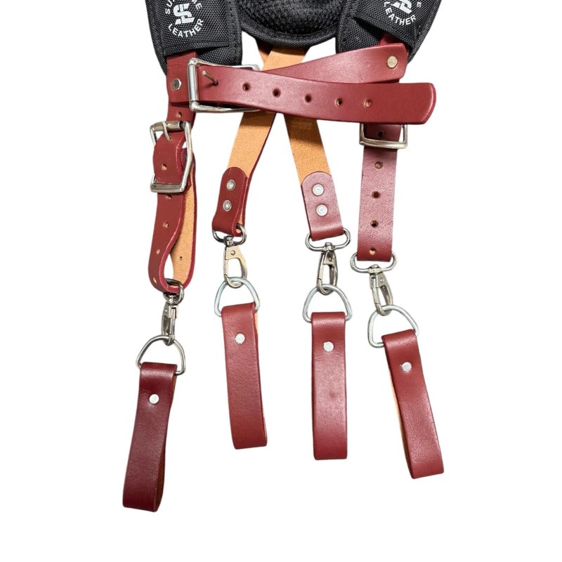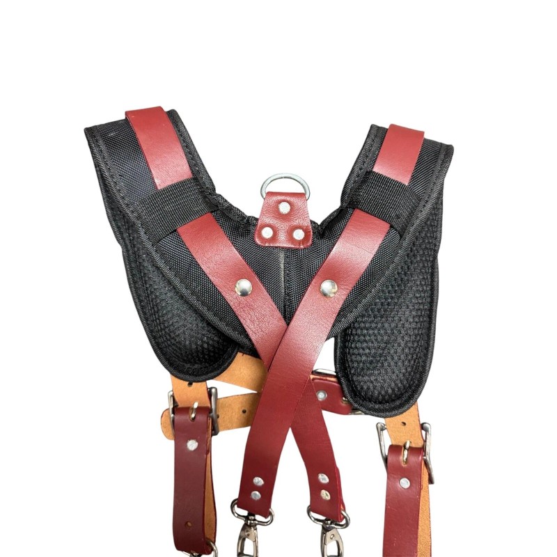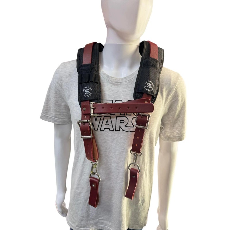 Supreme Leather Padded Tool Belt Suspenders Adjustable Work Suspenders with 4 Detachable D-Loops - SL 5102 Marron