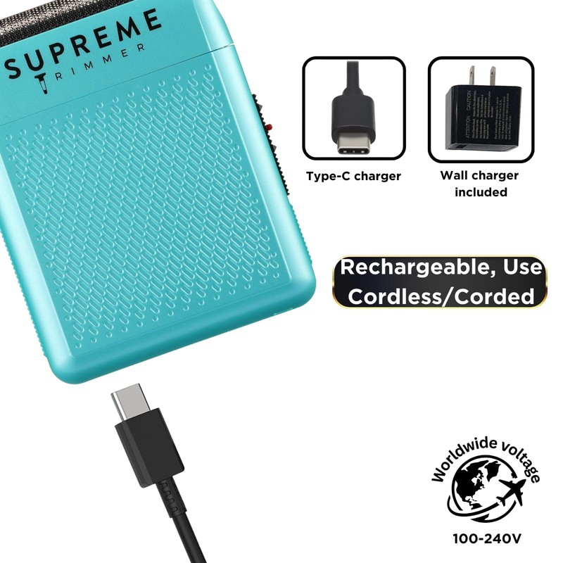 Supreme Trimmer Solo | STF101 - Afeitadora de una sola lámina | Tiempo de ejecución de 150 minutos | Afeitadora de bolsillo USB-C para barberos, viajes o uso doméstico | Azul claro