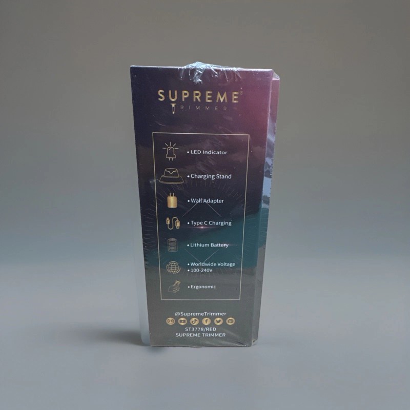 This listing is for a brand new, sealed Supreme Trimmer Vader Trimmer ST3778 in Red. It is a professional-grade cordless trimmer with a powerful motor and a DLC T-blade, designed for precise hair and beard grooming.