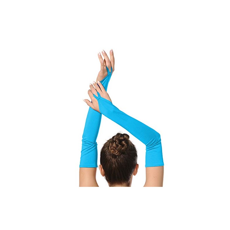 SUPRNOWA Adult Women’s Over Elbow Spandex Fingerless Long Gloves Costume Glove One Size Fits All (Ocean Blue)