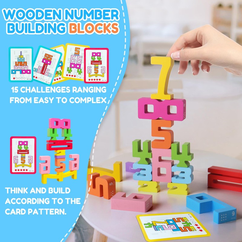 SUPRROW Wooden Number Building Blocks, Wooden Blocks for Kids, Digital Building Blocks Balance Competition Toy, Educational Gift for Boys and Girls