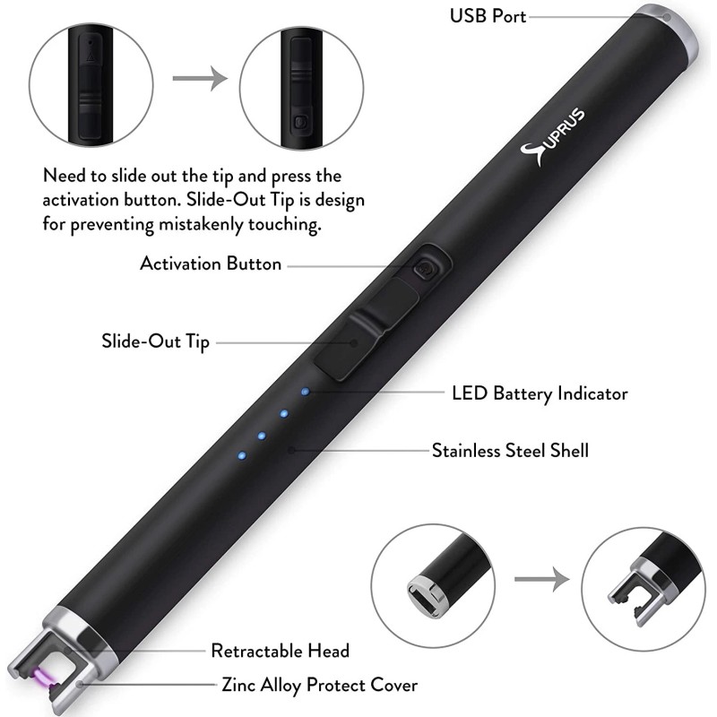 SUPRUS Lighter Electric Candle USB Type C Rechargeable Lighter with LED Display