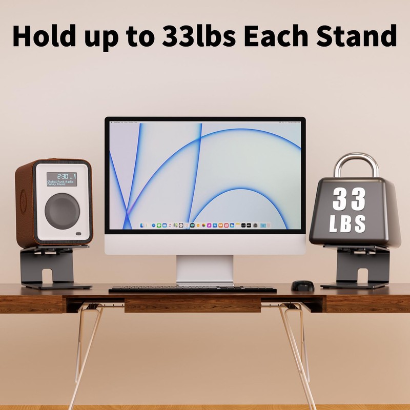 - 【Sturdy & Durable Steel Construction】 Built from heavy-duty steel, these stands offer rock-solid stability for demanding setups. The reinforced frame holds up to 33 lbs per stand, ensuring reliable support for studio monitors, bookshelf speakers, or PC audio systems. No wobbles, just pure durability.