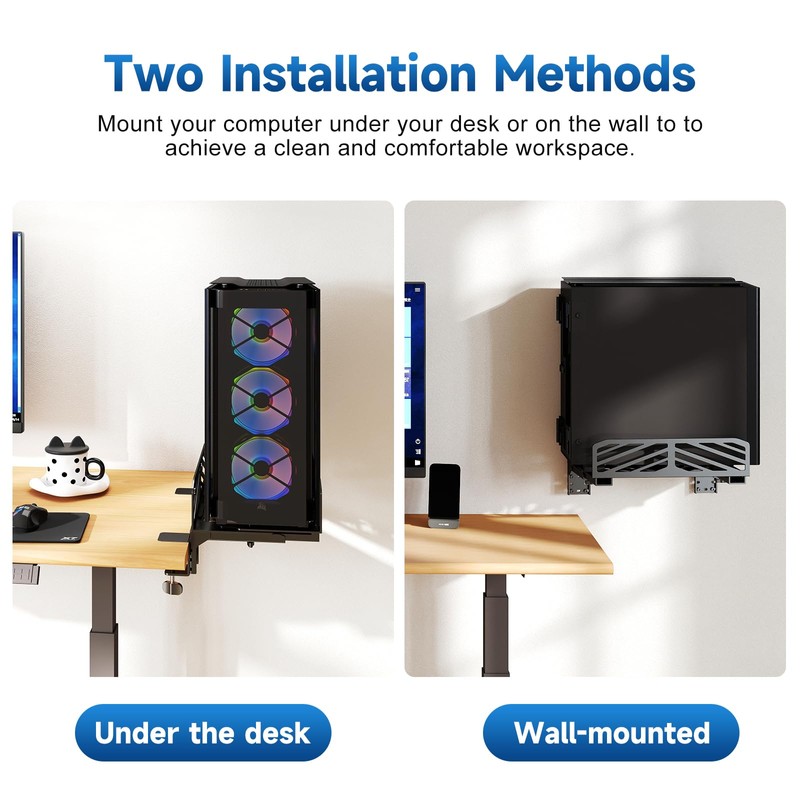 - Adjustable Width:Adjustable width allows you to use this universal PC desk mount for a variety of computer mainframe. The width is adjustable from 7.28inch to 11.81inch.