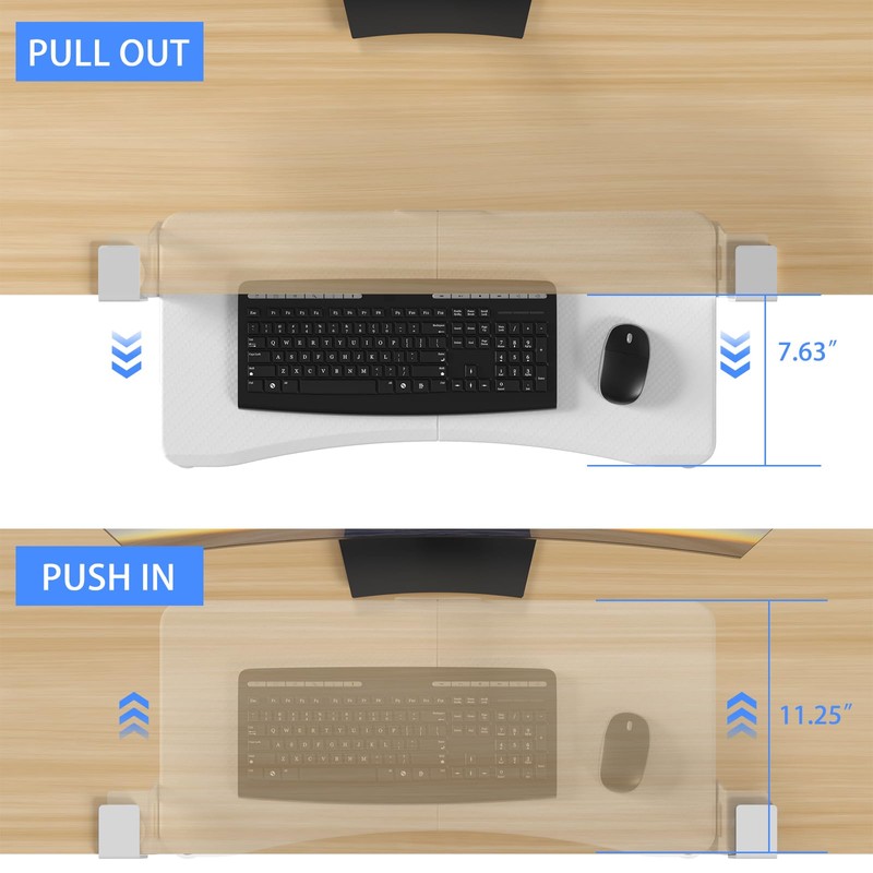 - Free up your desk - Adding an ergonomic keyboard tray to your desk can instantly free up desk space. You can easily stow the keyboard and mouse under the desk when it is not in use. An updated slide system ensures you pull and push the tray smoothly.