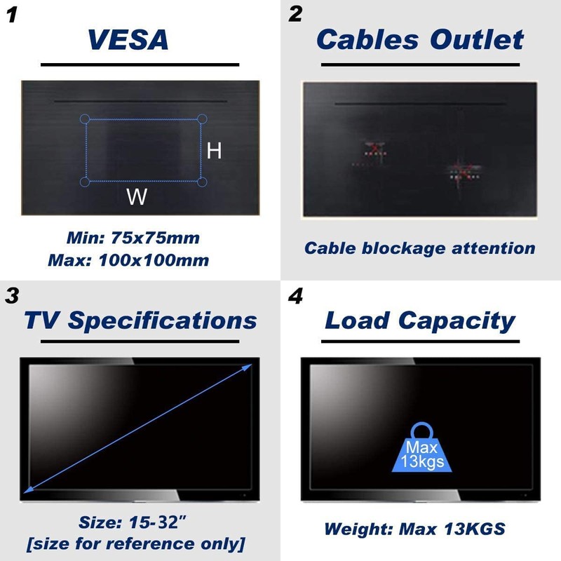 - Compatibility - compatible with VESA 75x75mm and 100x100mm, fits for concrete wall/wood stud