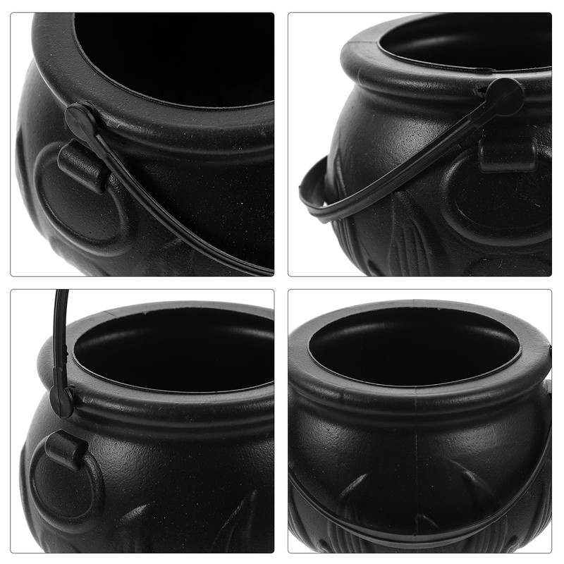 SUPVOX 12Pcs Plastic Cauldron Mini Black Witch Cauldron Pumpkin Bucket Candy ...