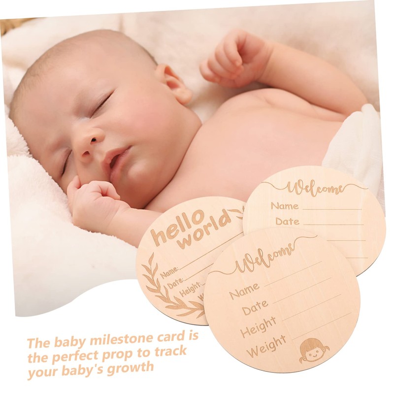 SUPVOX 3pcs Milestone Cards Set Wooden Growth Recording Signs for Birth Announcement Safe and Durable Photo Props for Newborns Height Weight Tracking
