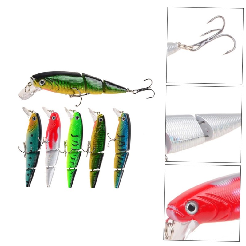 SUPVOX 5pcs Three-Section Hard Fishing Lures for Freshwater and Saltwater Durable Simulation Bait with Realistic Design for Bass and Trout Fishing