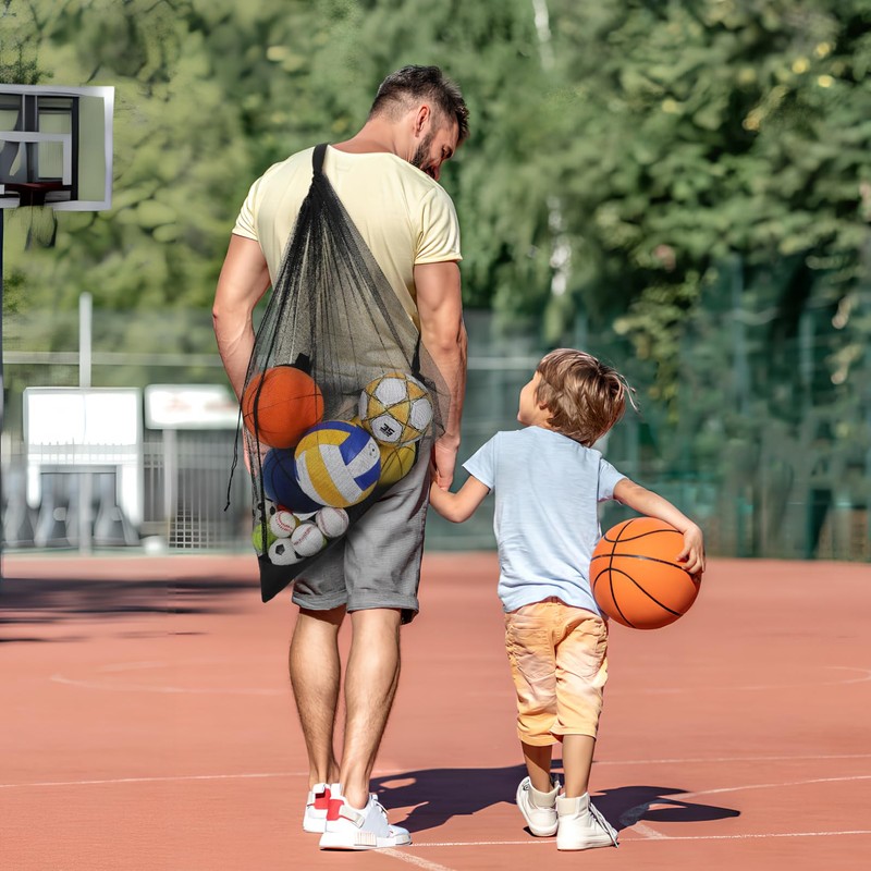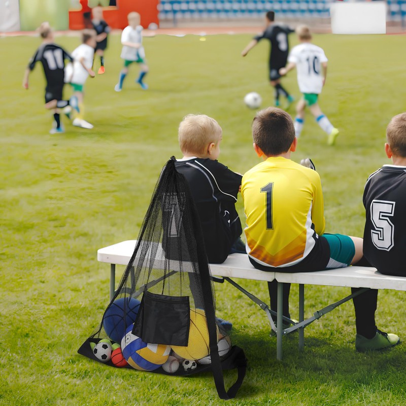 Large Capacity for Multiple Balls: This portable mesh ball bag is designed to hold multiple balls at once, making it fit for coaches, teams, sports enthusiasts. Whether you need to carry footballs, basketballs, volleyballs, or soccer balls, this bag has you covered