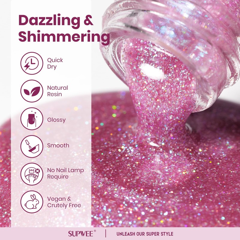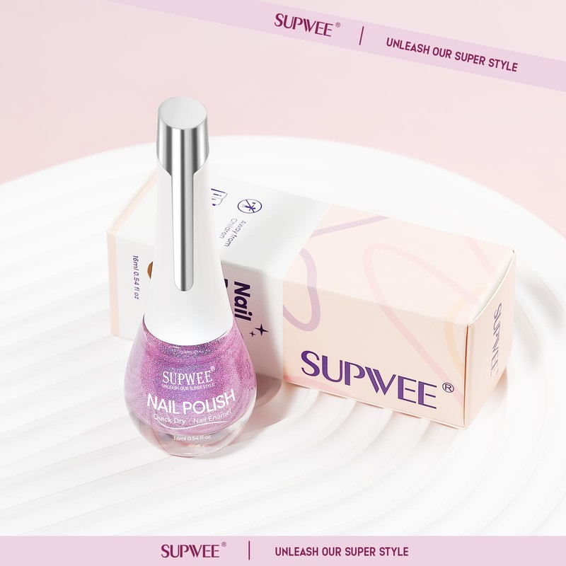 SUPWEE Quick Dry Glitter Nail Polish Holographic Finger Nail Polish Non Gel High Glossy Shiny Shimmer Nails Laquer Oil-based Holo Fingernail Air Dry Fast Manicure Gift For Women Girls 16ml, 0.54fl oz