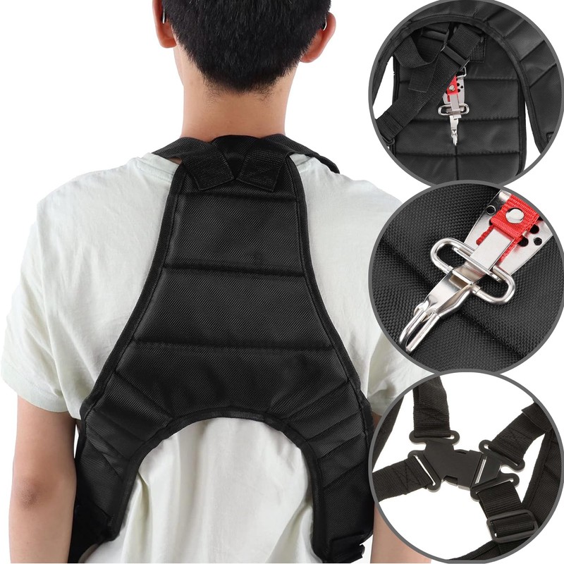 - 👍【Great Function】: The strimmer harness padded makes trimming weed cutting much easier. Take the weight off. Reduces shoulder and body fatigue by distributing the weight over your entire upper body,adjustable trimmer harness padded.