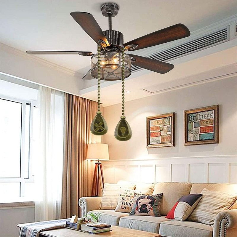 • ใ€๐๐ซ๐ž๐ฆ๐ข๐ฎ๐ฆ ๐Œ๐š๐ญ๐ž๐ซ๐ข๐š๐ฅใ€‘: The light bulb and fan shape pendant of the ceiling fan pulls are made of zinc alloy, and pull chains are made of copper material with nickel plated, which are durable and not easy to rust.