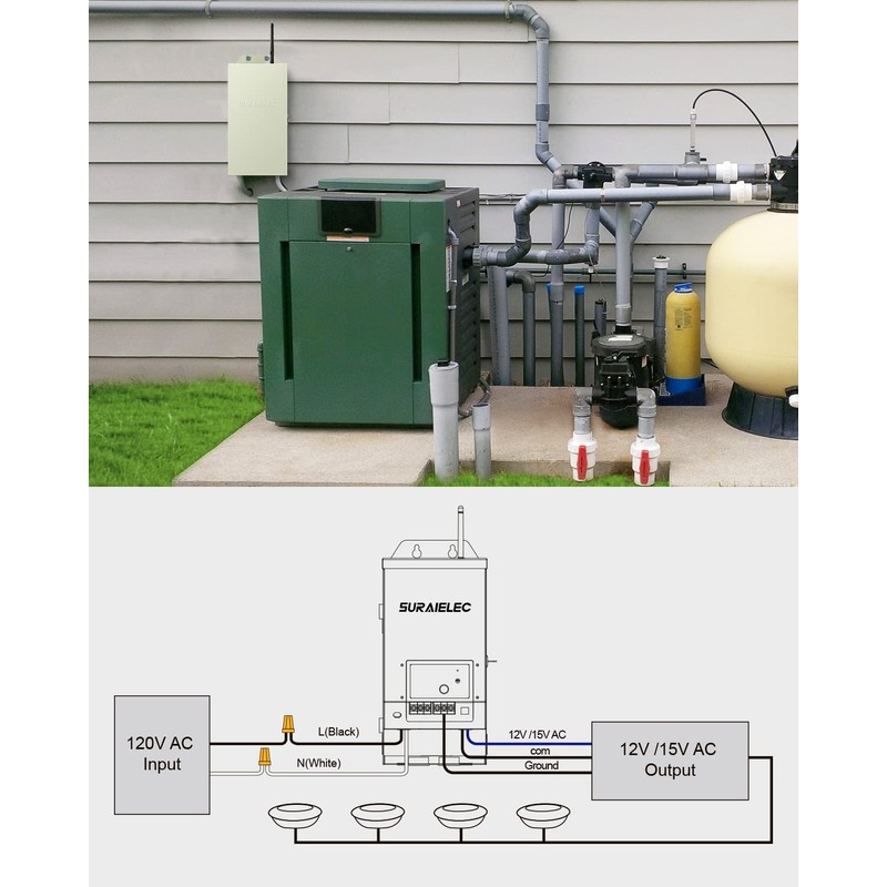 Suraielec 300W Smart Pool Light Transformer, 120V to 12V 15V AC, 2.4Ghz Wi-Fi Outdoor Light Transformer for Landscape Pathway Lights Spotlight, Work with Alexa & Google Assistant, Hardwired