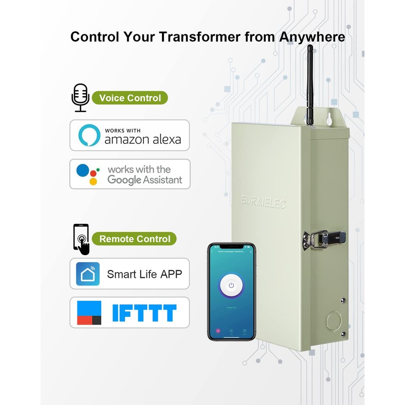 - 【Remote Control & Voice Control】Smart Life(Tuya) App supported, the multi-functional pool light transformer allows you to monitor spa lighting and fountain from anywhere. Works with Amazon Alexa and Google Assistant, you can enjoy the hands-free convenience of controlling any landscape lighting system via voice commands. 2.4G wifi ONLY, No hub required.